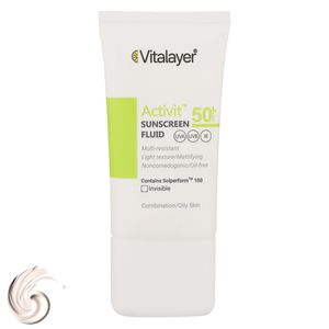 فلوئید ضدآفتاب بیرنگ ویتالیر SPF50 مدل Activit، مناسب پوستهای مختلط و چرب، حجم 50 میلیلیتر